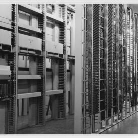 Fotografia em preto e branco, possivelmente em Minas Gerais. Imagem vista de cima de parte de possível cidade de Minas Gerais, com árvores, prédios e morro com vegetação ao fundo.