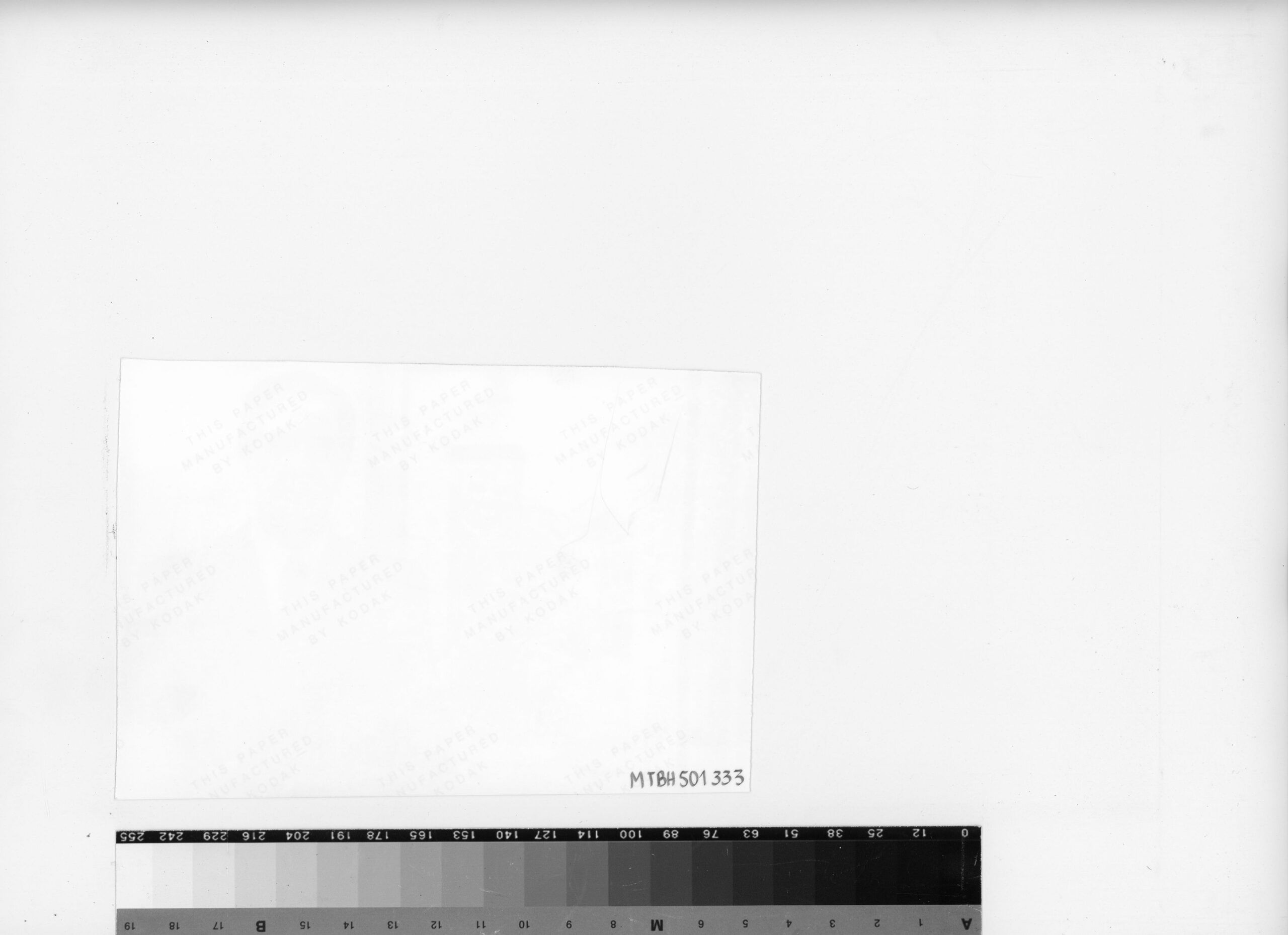 Fotografia em preto e branco em Minas Gerais. No primeiro plano, possível diretor da Telemig em pé, utilizando terno e gravata. Ao fundo, parede contendo quadro pendurado à esquerda, retratando rua com casas.