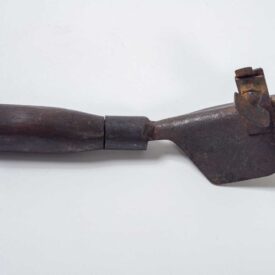 Peça em formato retangular de madeira com porta de vidro que se abre através de dobradiças. No seu interior possui engrenagens de metal dourado e plástico. Na parte de cima, contém nove chaves com as inscrições "1 SEG/ 6 SEG./ 30 SEG. / RELOG. EQPT EST./ BAT./ +T/ PENDULO/ NEG. MOVIM. POS.", respectivamente. Abaixo, interruptor com duas posições "ADIANTAR" e "ATRASAR". Na parte inferior, placa com as inscrições "GENTS'/ OF LEICESTER/ ESTB. 1872/ MAKERS". Na lateral direita da caixa, fechadura em formato losangular de metal.