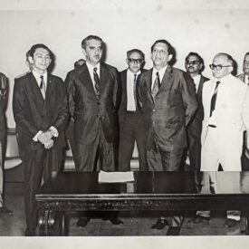 Instrumento de formato cilíndrico em metal cromado, na cor cinza. Na parte superior encontra-se tampa do instrumento em formato circular, na cor preta, possuindo seis aberturas circulares, com uma delas possuindo interior na cor cinza. No corpo do instrumento encontra-se uma placa metálica retangular, na cor preta, com informações sobre o objeto "MODERN SCIENTIFIC RESEARCH AND/ PRODUCTION CONTROL EQUIPAMENT/ ENGINEERED AND BUILT BY THE/ PRECISION SCIENTIFIC CO./ MADE IN U.S.A. CHICAGO, ILLINOIS/ COVERED BY ONE OR MORE OF THE FOLLOWING PATENTS/ DES117193-2325197-2266103/SERIAL NO. C-3 CAT. NO. 74966/ 36A TEMPERATURE RANGE TO 22OF/ VOLTS 115 CYCLES 60 WATTS 800/ AMPS. 7 H.P. PHASE 1 TYPE". Ainda no corpo do instrumento, abaixo da placa, apresenta cavidade retangular. O interior da base apresenta quatro suportes na cor preta presos a parafusos, usados para acondicionar algum objeto.